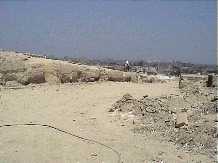 A detailed description is given in the appendix to Lewis's book. It describes an interconnected series of rooms with walls beautifully decorated with coloured friezes and refers to many magnificently carved figures. The style of decoration is described as showing characteristics of the period following Amenhotep's mystical reawakening of Egypt (presumably Amenhotep IV, better known as Akhnaton) and it is suggested that the complex was used by an ancient mystery school. A number of sarcophagi were found implying that the complex is a tomb, however the book suggests that they were used for initiatory practises. I was intrigued. The article as quoted in the book states that the find was in a remarkable state of preservation. Furthermore, it claims that photographs were taken at the time and artifacts were recovered. Where are they now? What was the name of the publication quoted in the book? The reason why this struck me as being of significance is that elsewhere in the book, it claims that The Rosicrucian Order, AMORC is in possession of ancient manuscripts that indicate the existence of underground passages and chambers connecting the Sphinx to the three main pyramids. The appendix to the book seems to suggest that Dr Hassan's discovery of the series of chambers beneath the causeway might in some way corroborate the existence of at least some of these underground passages and chambers. An overview of the appendix is given on page 6 In February 1998, I visited Giza to try to find some answers. The subway passing beneath the causeway linking the second Pyramid to the Sphinx was easy enough to find. A deep shaft descends vertically through the rock, however it is located to the side of the subway passage rather than being in the centre as stated in the book. Any further investigation was blocked by railings placed around the shaft and a locked gate, however the entrance to what was presumably the first chamber described in the book could be clearly seen cut into the north wall at the bottom of the shaft. On-the-spot discussions with a "local" revealed that there was a further vertical shaft descending from the unseen chamber and that the shaft led to two rooms with heiroglyphs on the walls. Unfortunately, this information was obtained via a "shaky" interpreter and so needed confirmation. From what I had already seen and heard, there were noticeable differences from the description given in Lewis's book. It struck me that the facts should be easily verifiable. Dr. Hassan worked at Giza for the University of Cairo for ten seasons starting in 1929 and his findings are documented in the ten volumes of "Excavations at Giza" published by the Government Press, Cairo. I thought I just needed to look up the report for the sixth season's work to find the answers but needless to say, this was not the case. Take The Surface Sightseeing Tour...When this section first appeared back in the summer of 1998, there were very few photographs of the location on the internet. The pictures here were grabbed from some videotape I shot in the first week of June 1998. You can click on them to see full-size images, some of them are marked with explanatory captions. Hassan's Description - A Lucky Find...On returning to the U.K. in February 1998, I visited the Egypt Exploration Society library as part of the search for a copy of "Excavations At Giza." Unfortunately, it did not possess volumes 6 to 10 but while thumbing through volume 5 for no particular reason, I came across a reference to the subway and the shaft under the heading "Shafts Of The Saitic Period." It states: